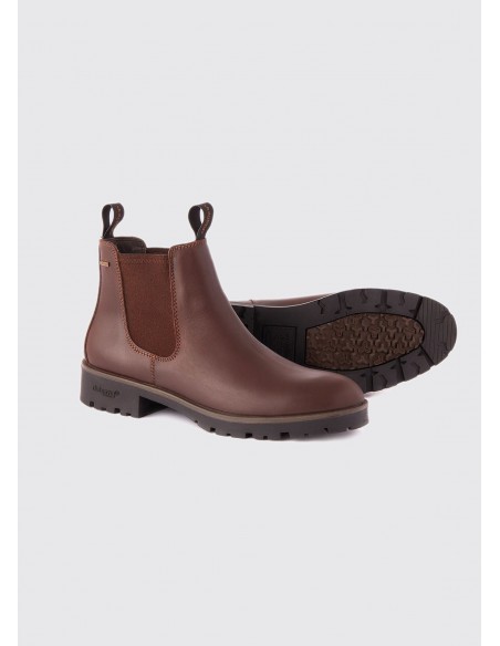 Antrim, une nouvelle bottine chelsea pour homme, intègre la technologie GORE-TEX et est fabriquée à partir des cuirs DryFast-DrySoft™ de Dubarry. Les goussets latéraux élastiques avec tirage au talon permettent une entrée et une sortie faciles et un ajustement parfait. Une chaussure idéale pour tous les jours.