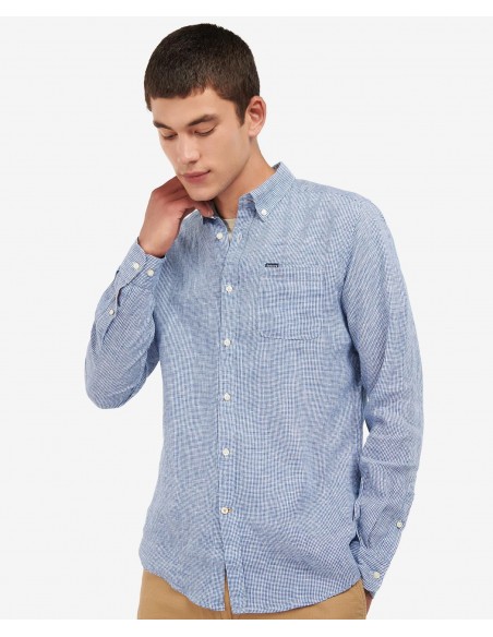 cette chemise à la coupe ajustée est confectionnée en 100 % lin dans un micro tissage pied-de-poule au fini doux.