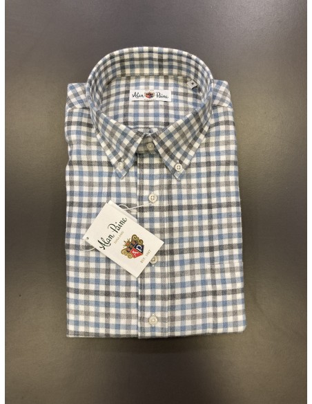 Chemise Alan Paine en 100% coton à carreaux dans des tons doux (bleus, gris, blancs).