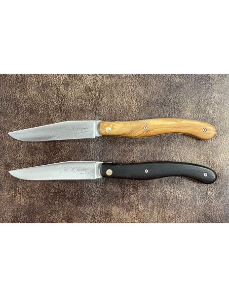 Le choix entre ces deux couteaux avec un manche en bois d'olivier et l'autre en bois d'ébène.