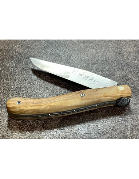 Le couteau Le St Jacques fait référence au chemin de St Jacques de Compostelle représenté par la coquille St Jacques que l’on retrouve sur ce couteau unique en son genre. Le manche du couteau Le St-Jacques est conçu avec une essence de bois que l’on retrouve le long des chemins. La fabrication est locale, maîtrisée, et d’une qualité sans concession car les artisans couvrent l’ensemble des étapes de la fabrication d’une pièce de coutellerie.