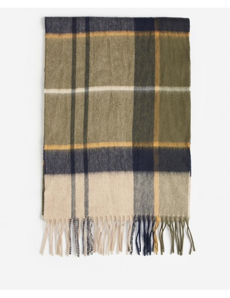 Doté d'un motif tartan sur toute la surface, cet accessoire multifonctionnel est doté d'un ourlet à pampilles classique.