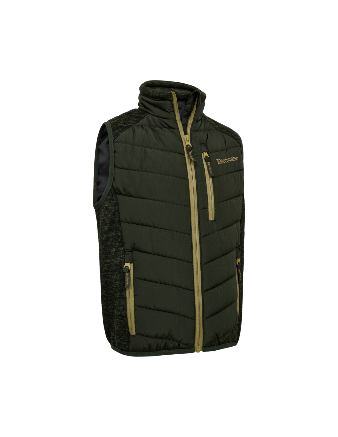 Le gilet matelassé Youth Moor reprend les codes du vêtement de chasse adulte pour les transmettre à la nouvelle génération. Doté d’une isolation DEER-TEX® Temp, il offre une chaleur légère et une protection du tronc sans entraver les mouvements. Des empiècements en maille sur les côtés et les épaules apportent souplesse et confort, tandis que les finitions élastiquées aux emmanchures et à la base aident à conserver la chaleur. Côté praticité, il est équipé d’une poche poitrine verticale et de deux poches zippées à l’avant pour ranger les petits objets essentiels. Parfait pour suivre les adultes en sortie nature ou lors des premières aventures de terrain.