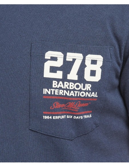 Fabriqué en 100% coton, le T-Shirt Steve McQueen Wing de Barbour International présente une conception à manches courtes avec des détails côtelés sur le col et une poche poitrine pour une attention particulière aux détails.