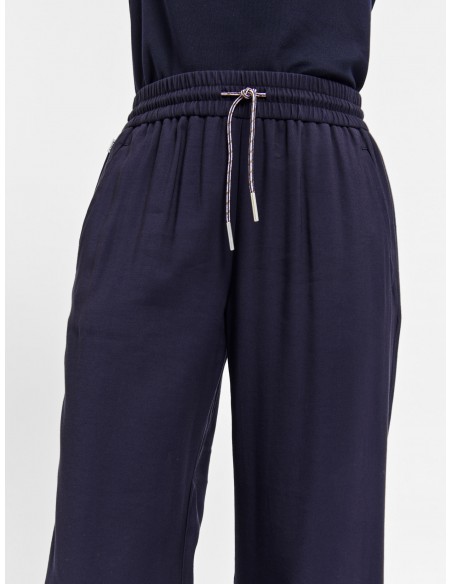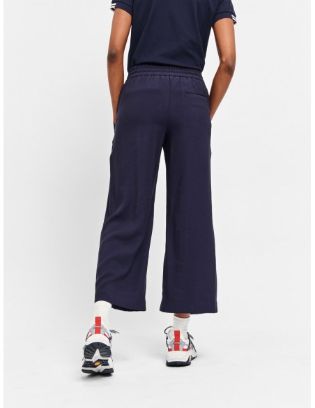 Ce pantalon coupe flare enrichit le vestiaire féminin estival, pour un look casual et un maximum de confort. Coupe large - Taille élastique avec reserrage cordon - 2 poches italiennes - 1 poche passpoilée au dos - Finition intérieur avec piping - Etiquette tissée "Aigle" dans la couture côté.