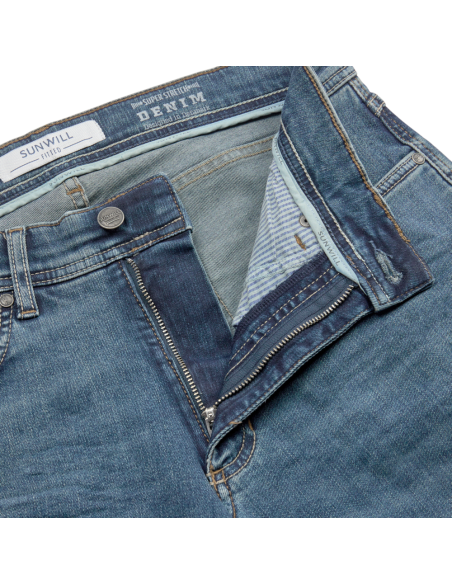 Coupe ajustée. Superbe tissu super extensible. Super stretch pour le confort et une coupe parfaite. Poches en jean et poche à monnaie à l'avant. Poches en jean classiques à l'arrière. Le pantalon se ferme par un zip.