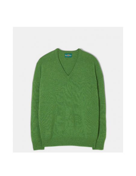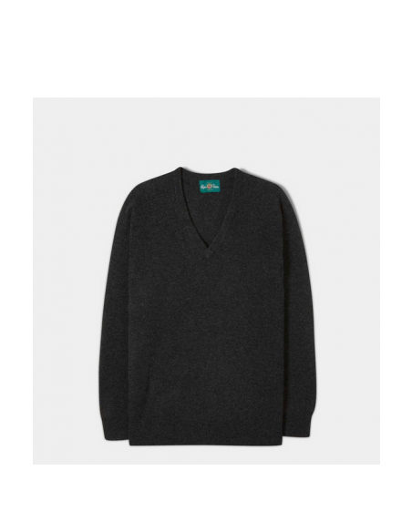 Un véritable classique. Ce pull à col en V est confectionné en pure laine d'agneau super douce et filée par le plus ancien filateur d'Europe. Il présente un galbe d'épaule en forme de selle, une coupe généreuse au niveau de la taille, conçu avec une coupe détendue, plus traditionnelle et confortable.