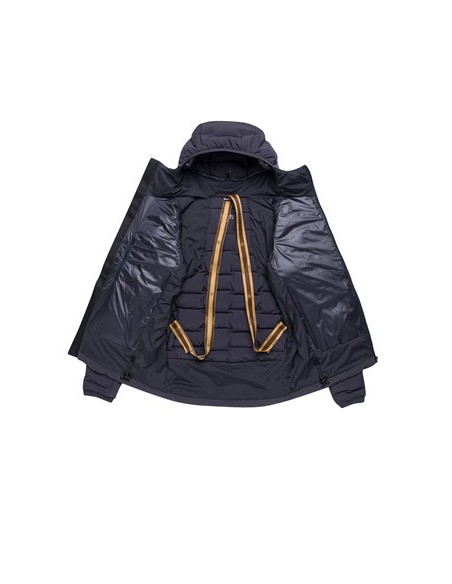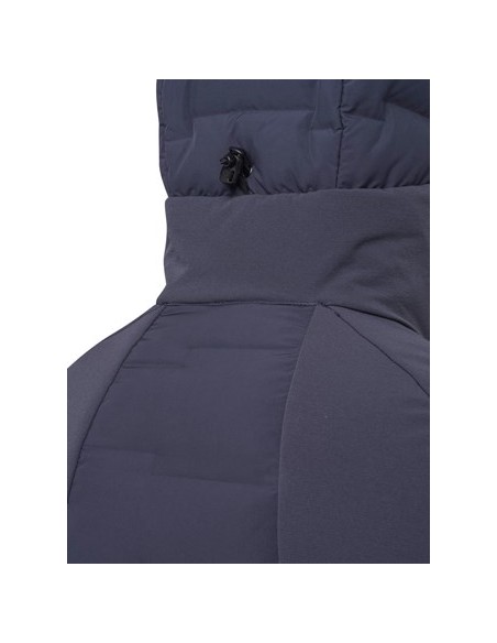 Le duvet d'oie sur le devant et au dos procure chaleur et légèreté. Le rembourrage doux et compact sur les côtés et au bas garantit une liberté de mouvement maximale. Le matériau a été soumis à un traitement hydrofuge DWR - Durable Water Repellent. L’association de tissus élastiques garantit une liberté de mouvement maximale.