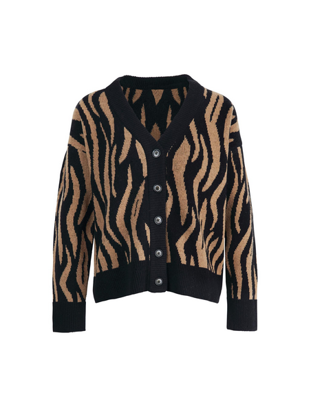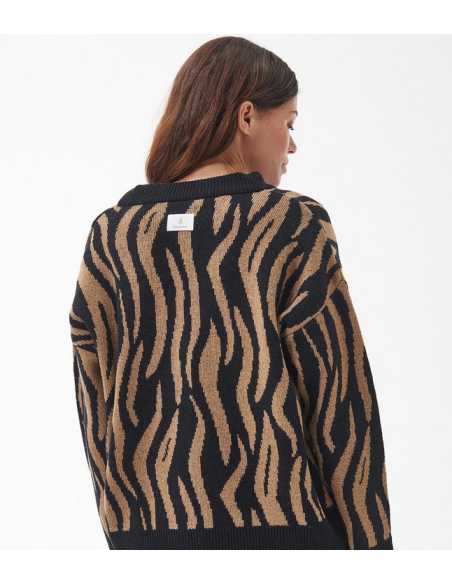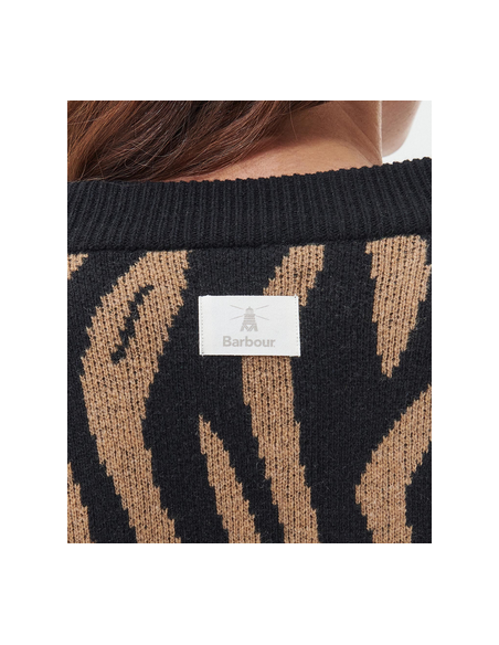 Le cardigan tricoté Barbour Lichen présente un design jacquard intégral contemporain, tissé à partir de fils riches