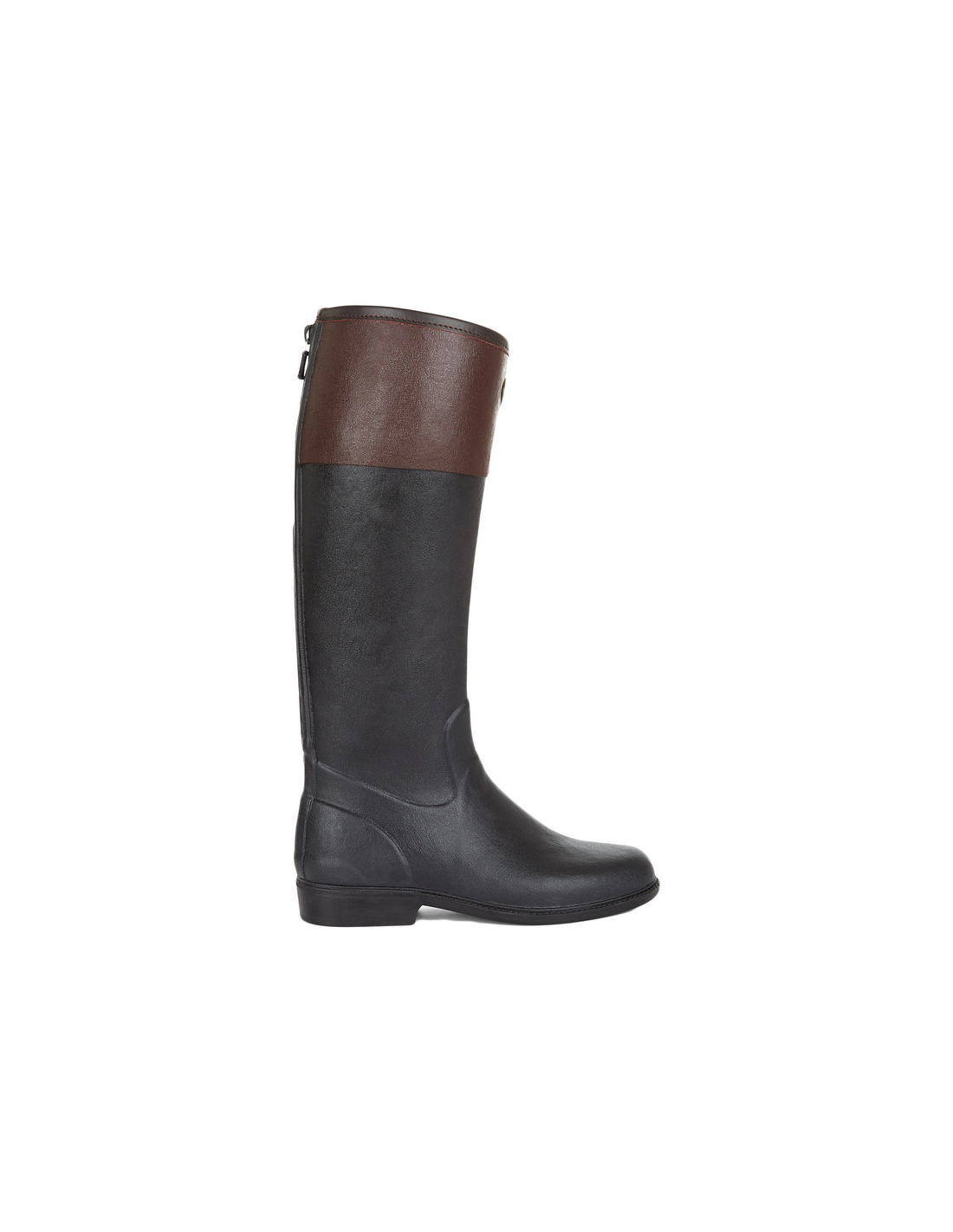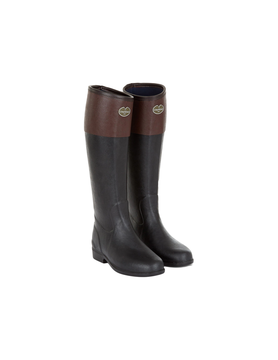 Cette botte de pluie pour femme vient de la célèbre marque Le Chameau. Elle est faite en caoutchouc naturel. Ce matériau est extrêmement durable et totalement imperméable. L'intérieur est doublé en polyester doux et confortable. Le jersey sèche rapidement après contact avec de l'eau et fournit une chaleur confortable jusqu'à 5°C. La semelle offre un excellent soutien et limite la fatigue lors de la marche. Son profil spécial à crampons augmente l'adhérence sur les sols meubles. La botte est faite entièrement à la main et elle est dotée d'une fermeture éclair pratique.